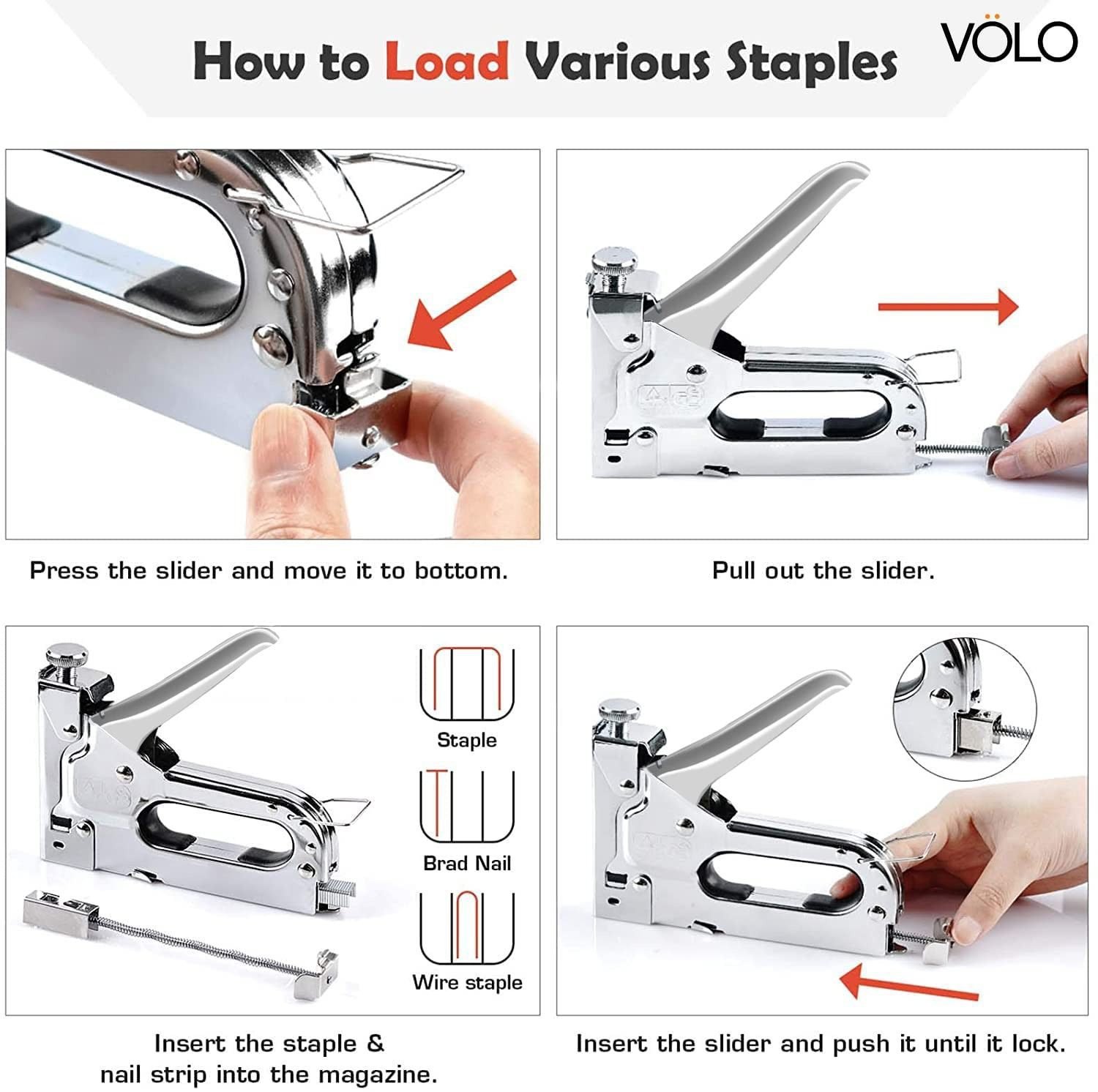 • 1 × Volo Heavy Duty Staple Gun (Silver)